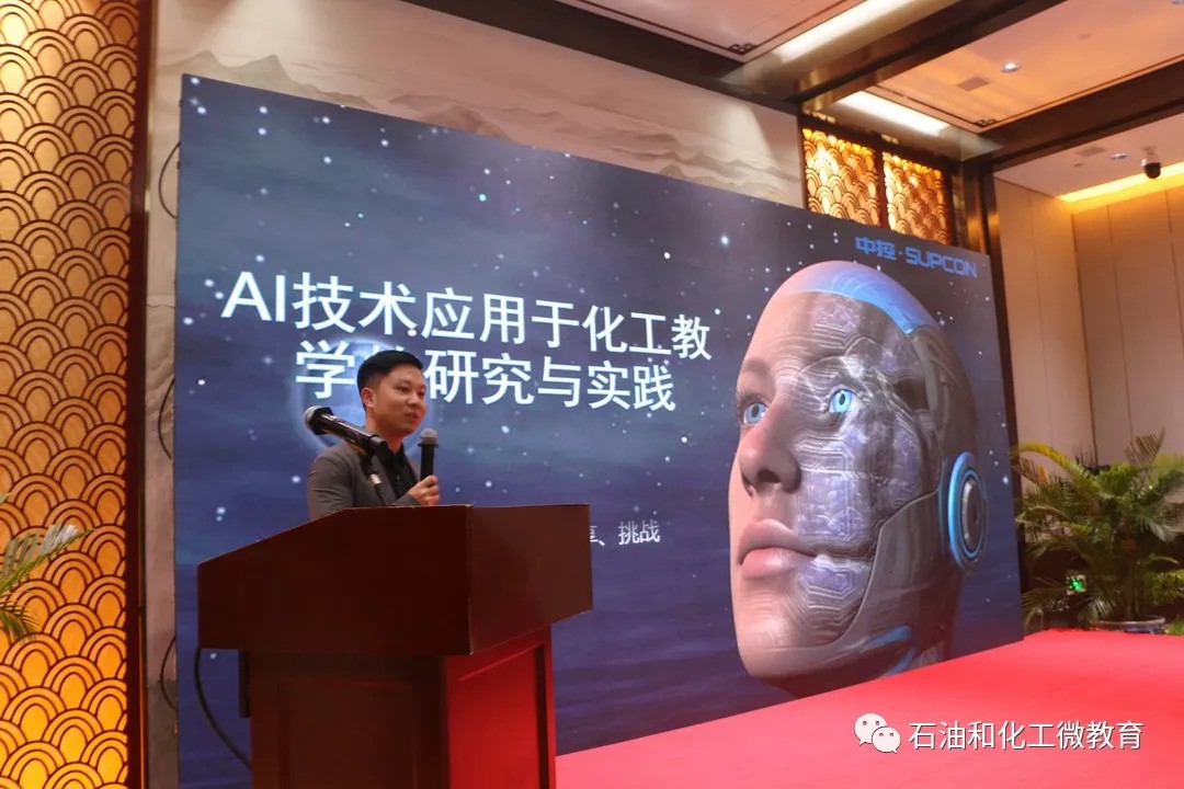 浙江中控科教儀器設(shè)備有限公司高級產(chǎn)品經(jīng)理徐日升作《AI技術(shù)應(yīng)用于化工教學(xué)的研究與實踐》報告。