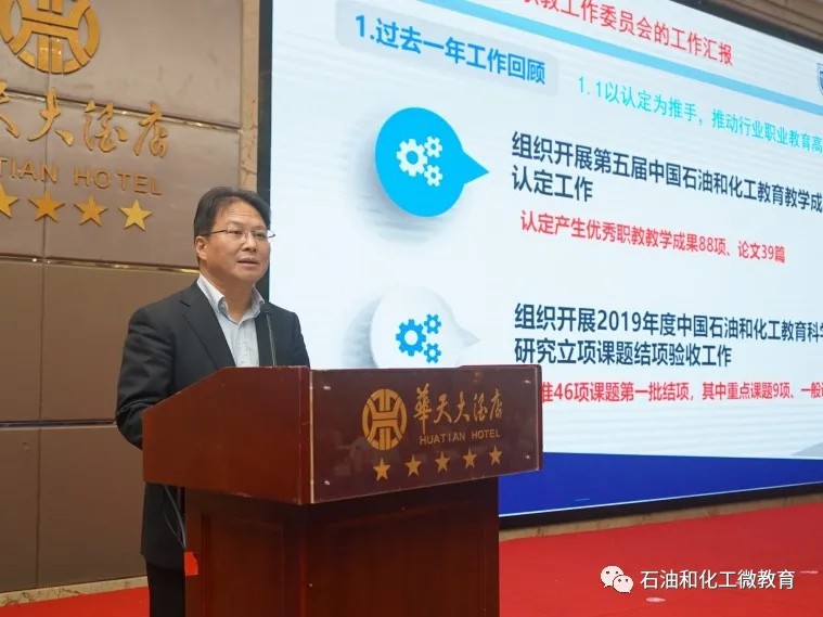 中國化工教育協(xié)會副會長、南京科技職業(yè)學(xué)院院長何學(xué)軍總結(jié)了協(xié)會職教工作委員會全年工作,并作了《改革賦能 創(chuàng)新提質(zhì) 推動化工職業(yè)教育高質(zhì)量發(fā)展》專題報告。報告對新時代職業(yè)教育改革作了思考和探索,提出:新業(yè)態(tài)下化工職業(yè)教育要在化工行業(yè)發(fā)展的變局中謀新局,在化工職業(yè)教育的挑戰(zhàn)中育先機(jī),走化工職業(yè)教育創(chuàng)新發(fā)展之路。