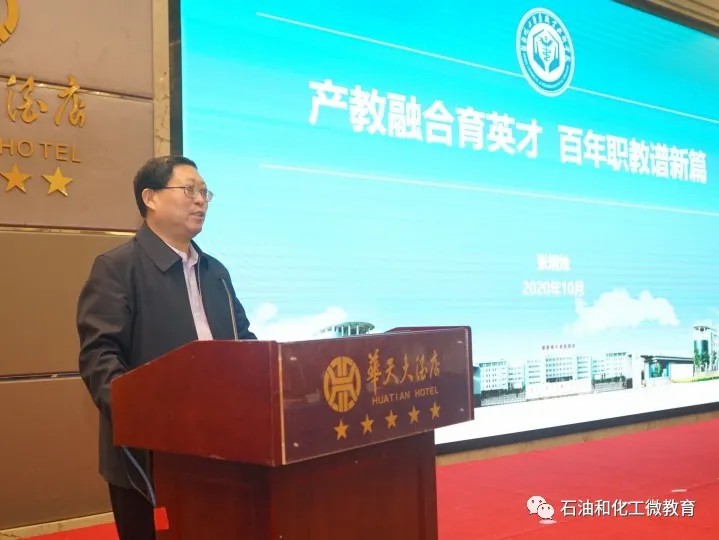 中國化工教育協(xié)會副會長、河北化工醫(yī)藥職業(yè)技術(shù)學(xué)院黨委書記張炳燭作《產(chǎn)教融合育英才 百年職教譜新篇》報告,分享了學(xué)校產(chǎn)教融合育人的理念和實(shí)踐經(jīng)驗(yàn)。