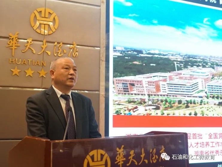 中國化工教育協(xié)會副會長、湖南化工職業(yè)技術(shù)學(xué)院黨委書記王雄偉作《創(chuàng)新驅(qū)動雙高專業(yè)群,育化工智能技術(shù)人才》報告,分享了學(xué)校以雙高專業(yè)群建設(shè)為抓手,培育化工高素養(yǎng)技術(shù)技能人才的理念與實(shí)踐。